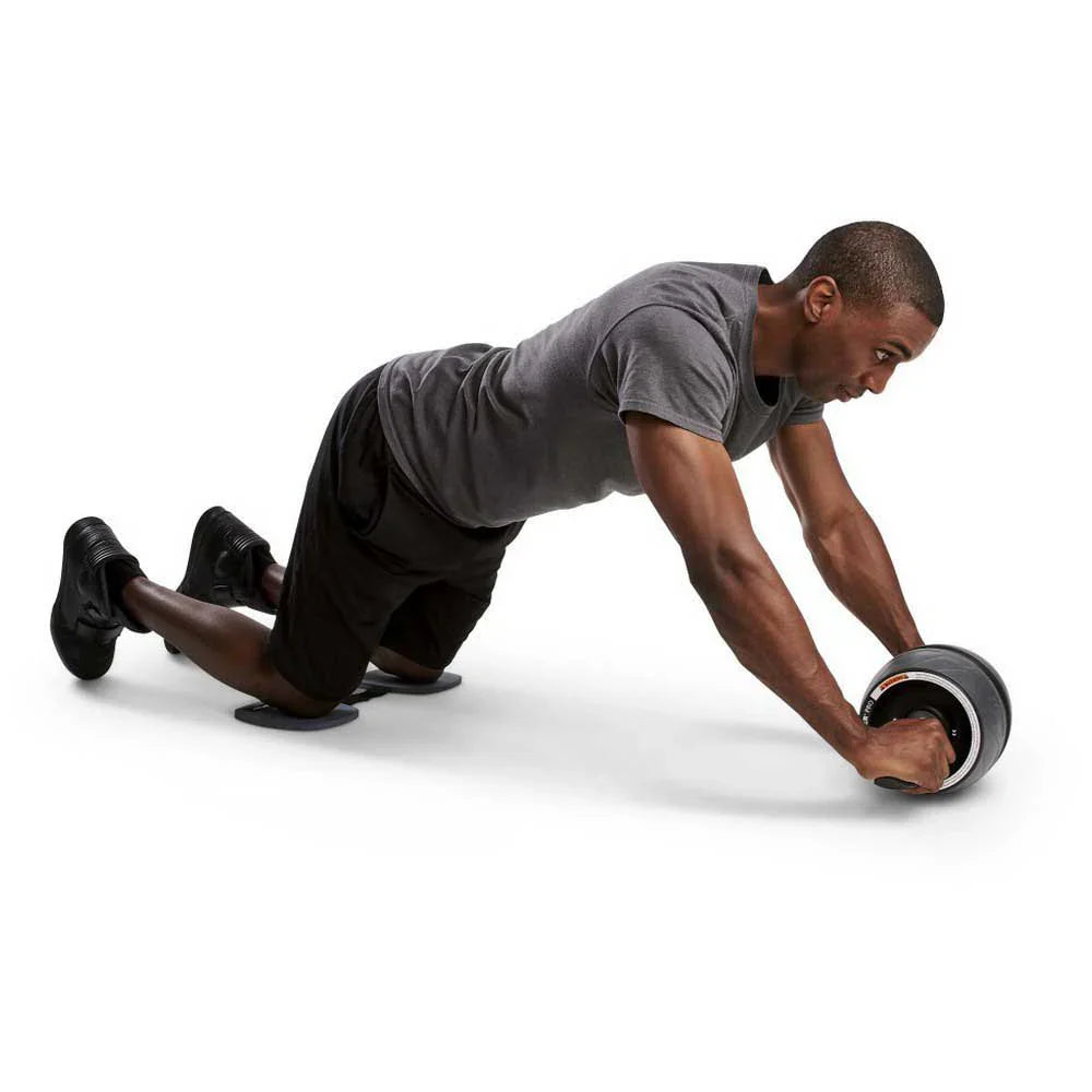 La roue sphérique ultra-large permet aux utilisateurs de se positionner à gauche ou à droite pour engager tous les ensembles d'abdominaux, y compris les muscles obliques. La largeur accrue des roues offre stabilité et équilibre.